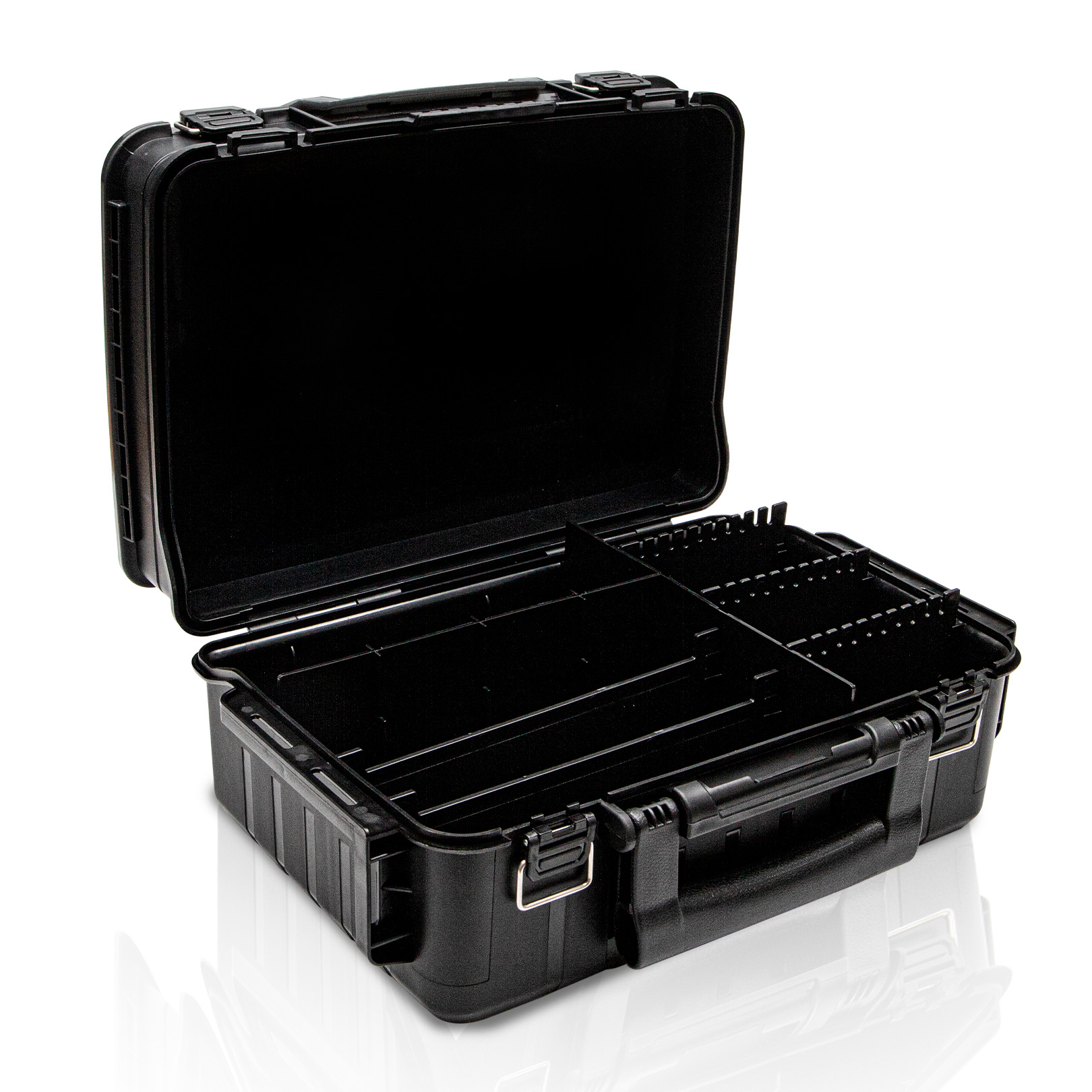 Oferecendo dois compartimentos e um total de 16 divisórias ajustáveis para armazenar iscas e acessórios de pesca, a maleta de pesca Daisen proporciona organização e praticidade para os pescadores, permitindo fácil acesso aos itens indispensáveis durante as pescarias.