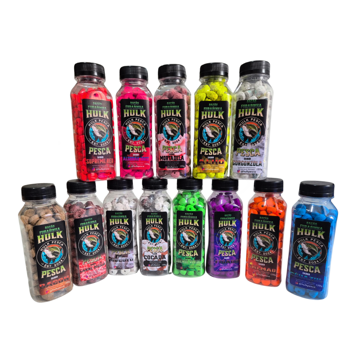 A ração furadinha pronta para pesca foi desenvolvida com aromas e sabores diferenciados, pensados para aumentar a atratividade e estimular o ataque dos peixes. Seu grande destaque são as cores chamativas e fluorescentes, que se sobressaem na superfície da água, facilitando a visualização e despertando ainda mais o interesse.