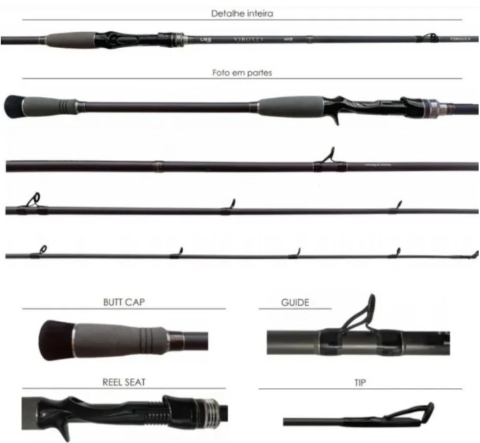 Projetada para sensibilidade, a nova vara Lumis Virotty apresenta o exclusivo carbono japonês Torayca IM8. Seus componentes proporcionam leveza e agilidades para trabalhar iscas artificiais como plugues e soft. Com um dos maiores casting da categoria, ideal para arremessar iscas artificiais grandes e principalmente para boias cevadeiras em pesqueiros. Seus componentes são de primeira linha, passadores em aço inox e porcelana em oxido de alumínio resistente a abrasão, reel seat anatômico e ponteira ante enrosco (low rider) são outros pontos fortes desse modelo.